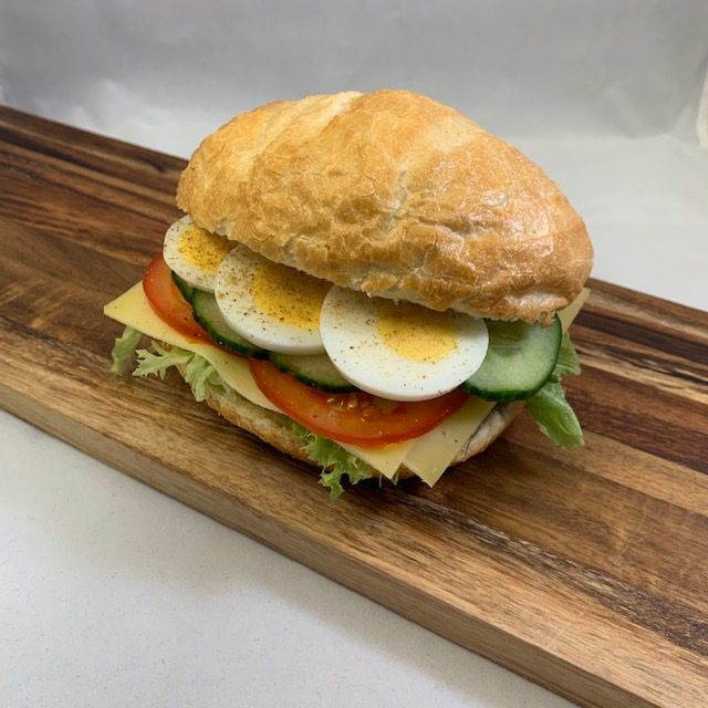 Boerenkaas, sla, tomaat, komkommer en ei